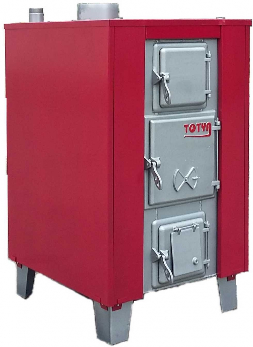 Totya DTS-48 A3 acéllemez kazán. Tartozékok: kazán rostélyok, hőmérő óra, külső burkolat szigeteléssel, kezelési utasítás. Automata huzatszabályzó külön rendelhető.